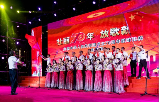 為熱烈慶祝中華人民共和國成立70周年,仁和區(qū)委、區(qū)政府于9月25日,在仁和區(qū)商業(yè)文化廣場舉辦慶祝新中國成立70周年歌詠比賽。攀枝花公司派隊參加,為現(xiàn)場觀眾帶來《我和我的祖國》和《中國中國鮮紅的太陽永不落》兩首歌曲。